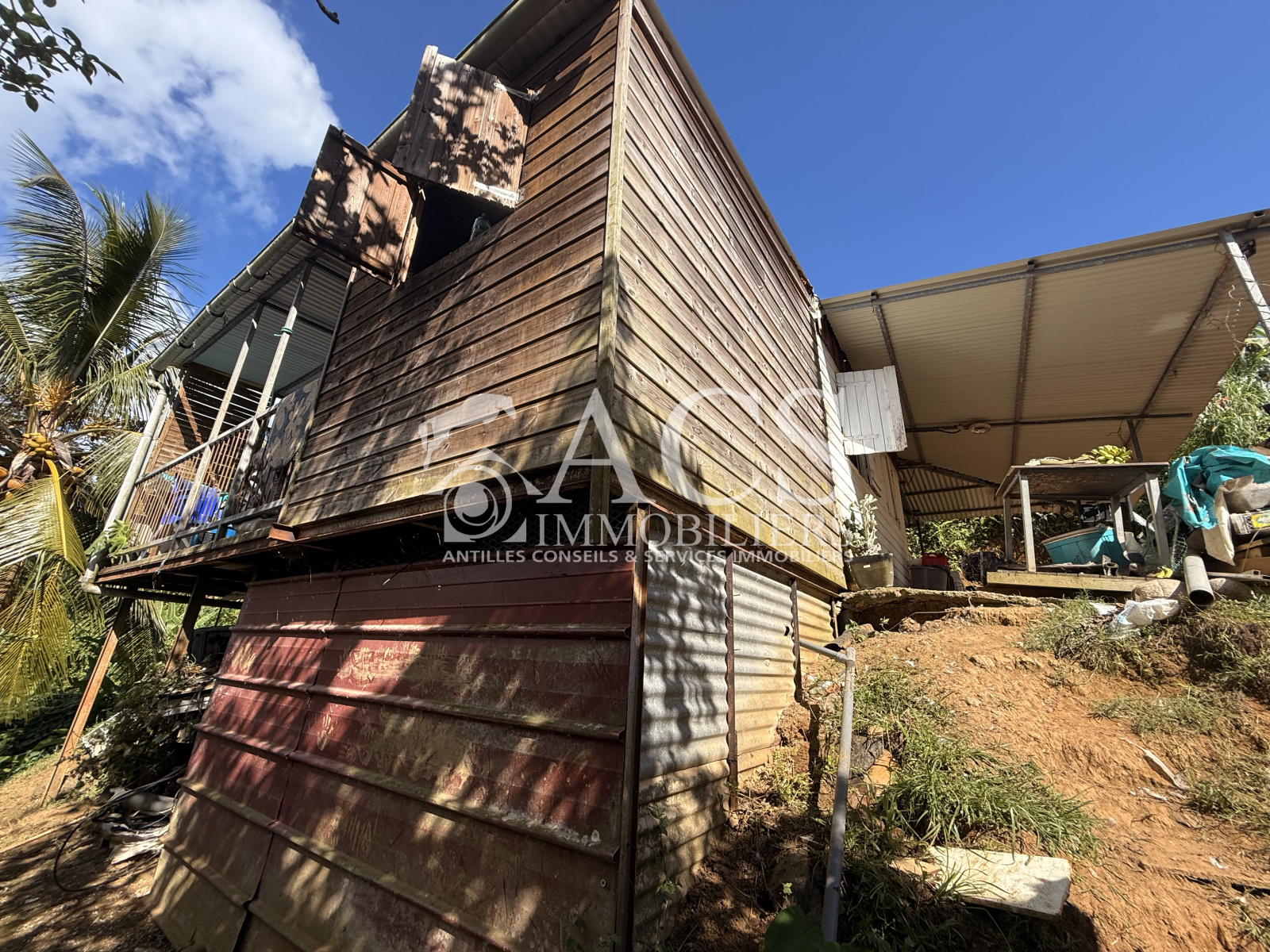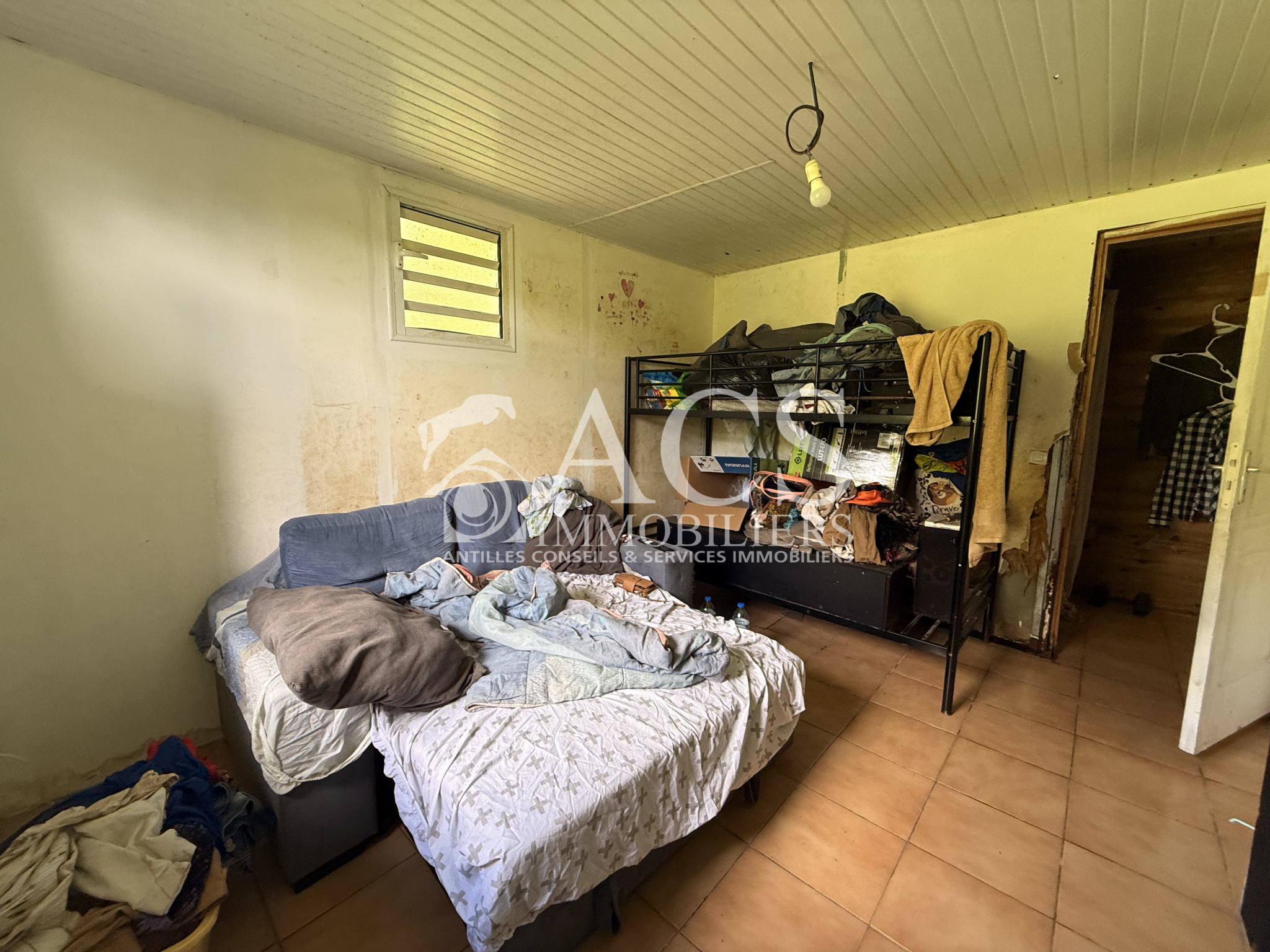 Terrain plat avec maisonnette à démolir.